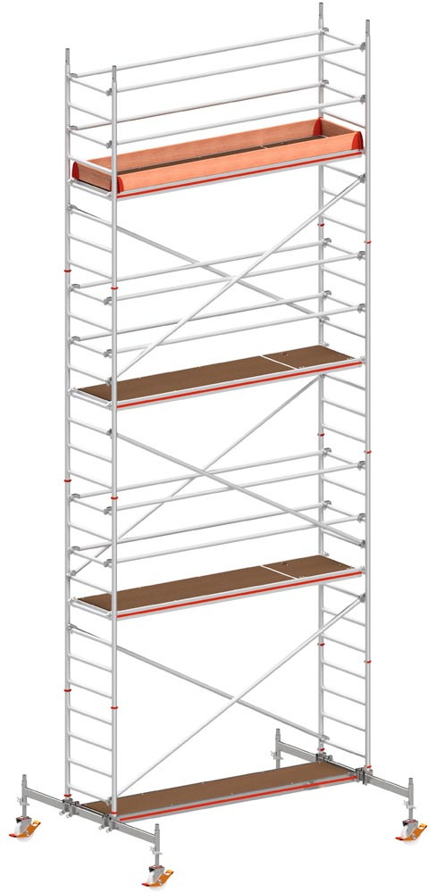 Fahrgerüst, Aluminium, mit Fahrtraverse, Reichhöhe 11,60 m, Standhöhe 9,60 m, Gerüsthöhe 10,82 m, Gewicht 424,2 kg
