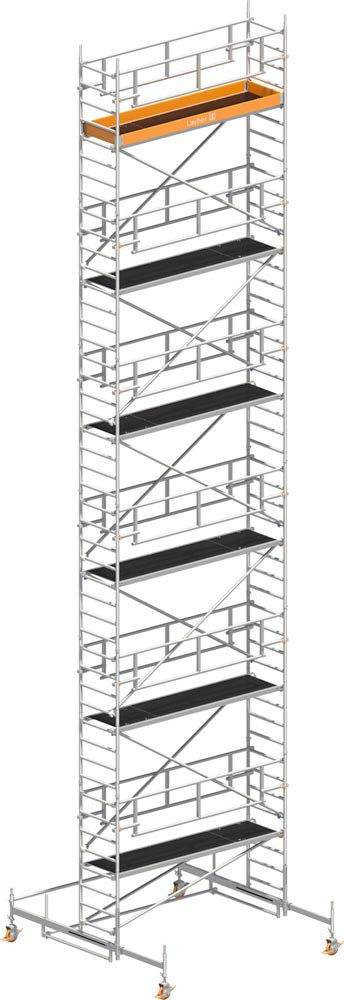 Fahrgerüst P2 mit Sicherheits-Doppelgeländer, Arbeitshöhe 13,38m, Gerüsthöhe 12,61m,Standhöhe 11,38m, Gewicht ohne Balast: 528,7 kg