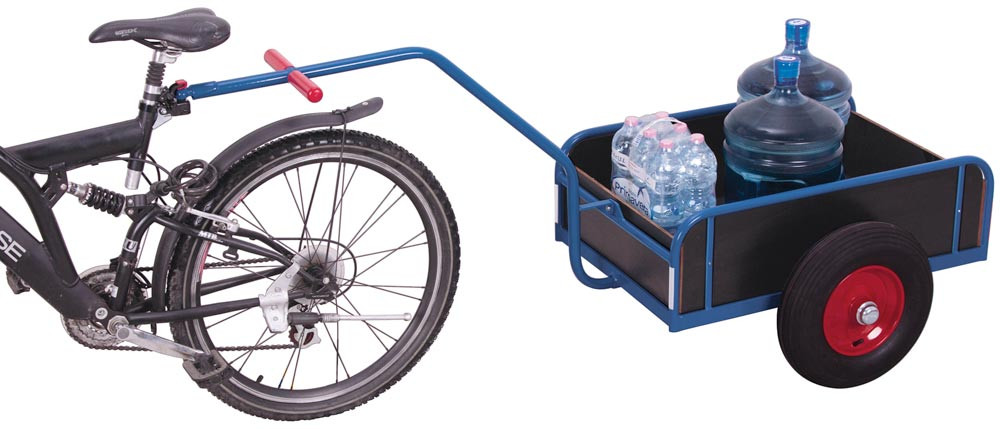 Fahrradanhänger mit Bordwänden, Ladefl. 1105x535 mm, Bordwand-H 220 mm, Traglast 400 kg, Anhängerkupplung, Luftbereifung, RAL 5010 enzianblau