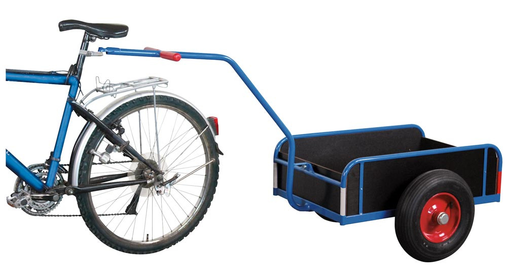 · Geschweißter Profilstahlrahmen · Pulverbeschichtet RAL 5010 enzianblau · Schlag- und kratzfest · Ladefläche mit rutschsicherer Siebdruckplatte aus wasserfest verleimtem Sperrholz · Sicherheitsreflektoren · Geländer- bzw. Bordwandhöhe 220 mm · Inkl. kompletter Anhängerkupplung · Deichsel mit angeschweißter Halbkugelschale · Kugelbolzen mit Halteklemme wird zur Selbstmontage am Fahrradrahmen lose mitgeliefert · Luftbereifung · Stahlfelge mit Kugellager