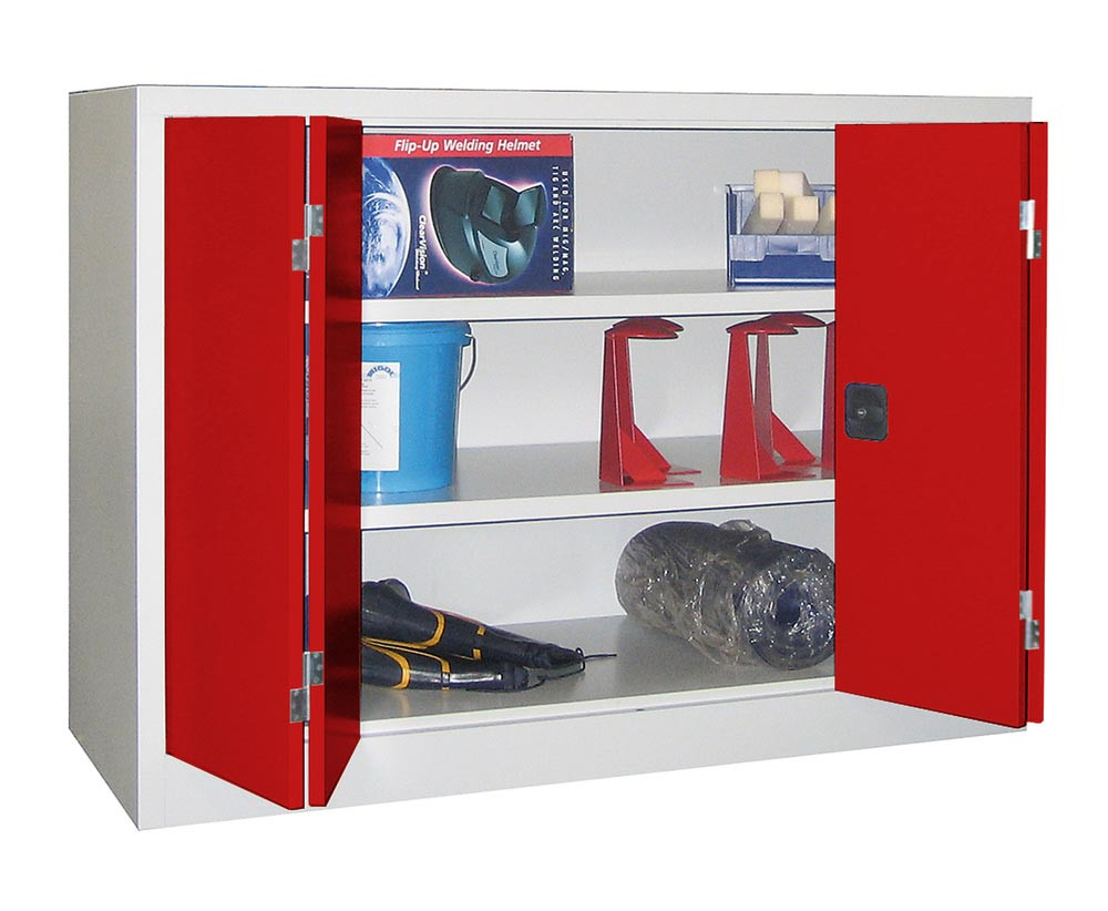 Falttürenschrank, Vollblechtüren, 2 verzinkte Böden, BxTxH 1200x400x1000 mm, RAL 7035/3000 E1567522