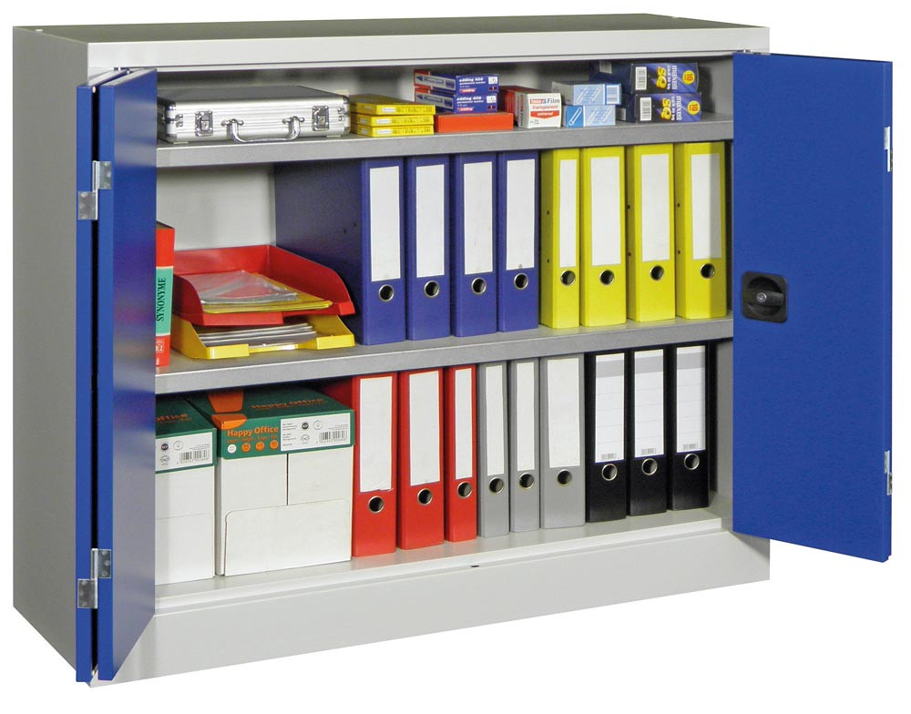 Falttürenschrank, Vollblechtüren, 2 verzinkte Böden, BxTxH 1200x400x1000 mm, RAL 7035/5010 E1572935
