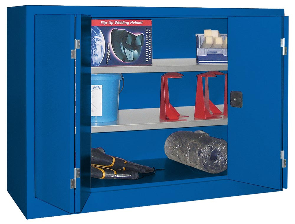 ∙ Stabile Stahlblechkonstruktion ∙ Oberfläche pulverbeschichtet ∙ Schränke mit gemeinsam verschließbaren Vollblech-Falttüren und Verstärkungstaschen ∙ Die Türen sind über einen dreiriegeligen Drehgriff mit integriertem Zylinderschloss inkl. 2 Schlüsseln verschließbar ∙ Böden im Raster von 17 mm höhenverstellbar, Belastbarkeit je Boden 80 kg bei gleichmäßig verteilter Last ∙ Max. Gehäusebelastbarkeit 600 kg