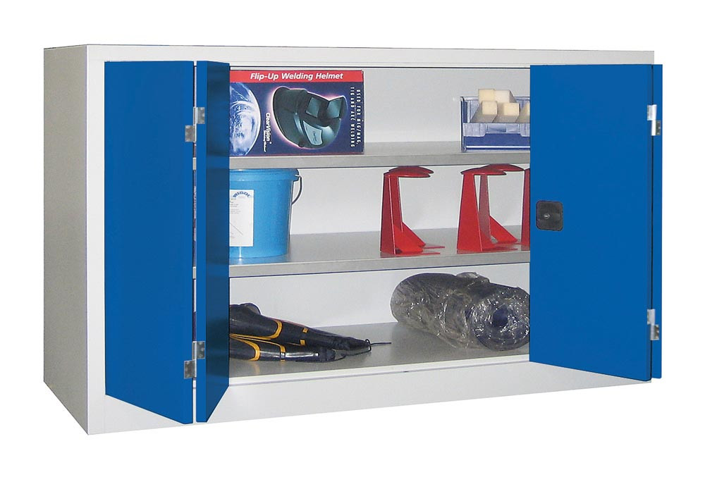 Falttürenschrank, Vollblechtüren, 2 verzinkte Böden, BxTxH 1200x400x1000 mm, RAL 7035/5010 E873538