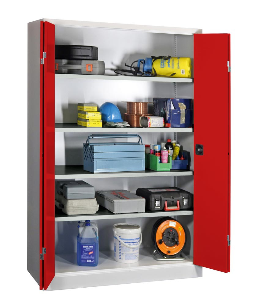 Falttürenschrank, Vollblechtüren, 4 verzinkten Böden, BxTxH 1200x400x1950 mm, RAL 7035/3000 E1567530