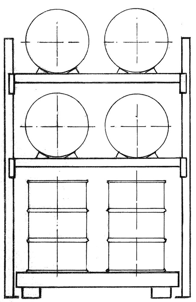 4 x 200-l-Fass liegend, 4 x 200-l-Fass stehend