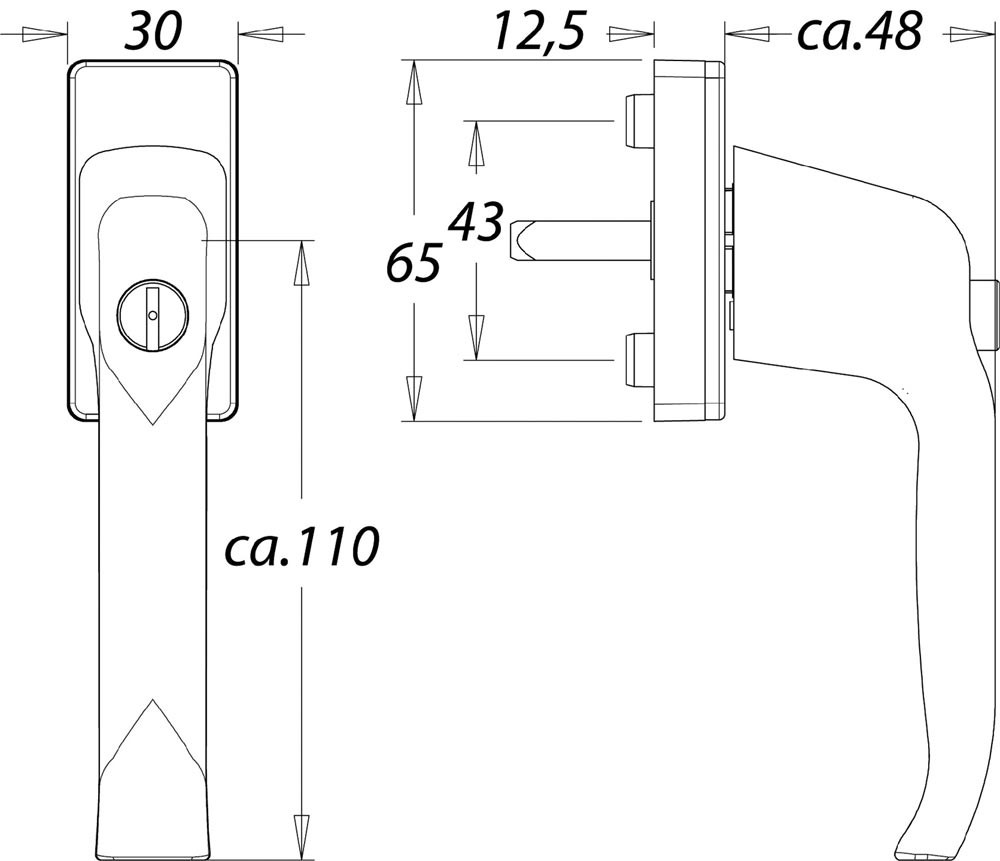 Fenstergriff 1003/2035 Aluminium 35 mm F12 / verkehrsweiß abschließbar E6430108