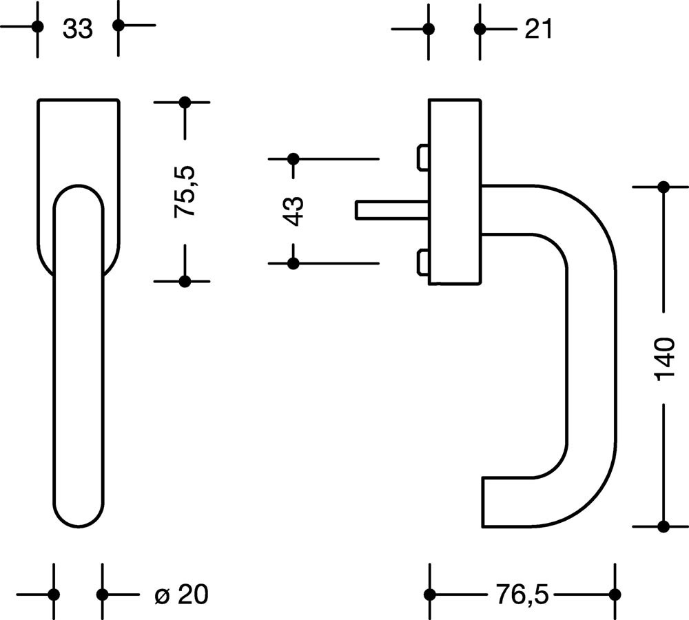 aus Edelstahlrundrohr (1.4301), Durchmesser 21,3 mm, 140 mm lang, mit 1,5 mm Wandstärke, mit 90 Grad-Rastpunkten und 7 mm Vierkantstift, Länge 30 mm vorstehend (andere Längen und 45 Grad-Rastung auf Anfrage). Der Fenstergriff erfüllt die Vorgaben der DIN 18040. Vormontiert auf Rosette mit Metallunterteil, 75,5 x 33 mm, mit Stützzapfen Durchmesser 10 mm, verdeckte Verschraubung, Schraublochabstand 43 mm, Abdeckkappe aus Edelstahl (1.4301), Wandstärke 1,5 mm. Integrierter Druckzylinder mit 5 Stiftzuhaltungen, in allen Raststellungen schließbar, die Schließung wirkt direkt auf den Griff und blockiert die Drehung. Prüfung gemäß RAL-RG 607/9. Incl. 2 Schlüssel. Alle Schließzylinder sind mit dem gleichen Schlüssel schließbar, Schließung 2W005 · Artikel: HEWI 111XAFGA.1