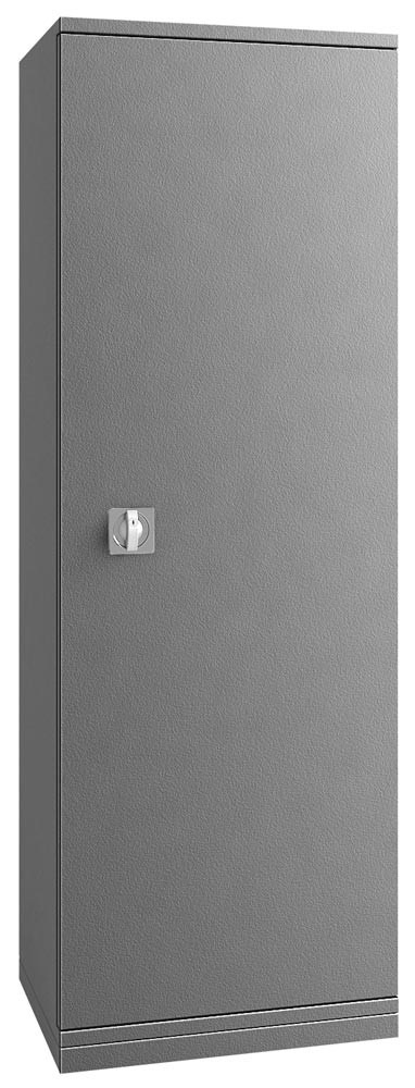 · Korpus und Türen aus 1,5 mm starkem, gekantetem Stahlblech, allseitig doppelwandig · Hochwertige Feuerisolierung durch umlaufende Feuerfalz · Tür mit 3-seitiger Verriegelung über Riegelwerk mit Muldengriff und Zylinderschloss, inkl. 2 Schlüsseln · Beschläge 12 mm vorstehend