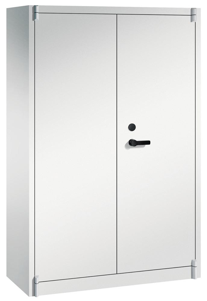Feuergeschützter Flügeltürenschrank, BxTxH 1200x500x1950 mm, 2-türig, 4 Fachböden, RAL 7035 lichtgrau