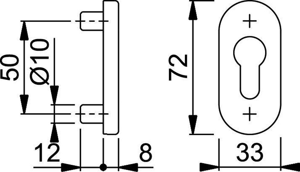 Feuerschutz-Schlüsselrosette FS-E55S Edelstahl F69 Schildstärke 8 mm PZ oval
