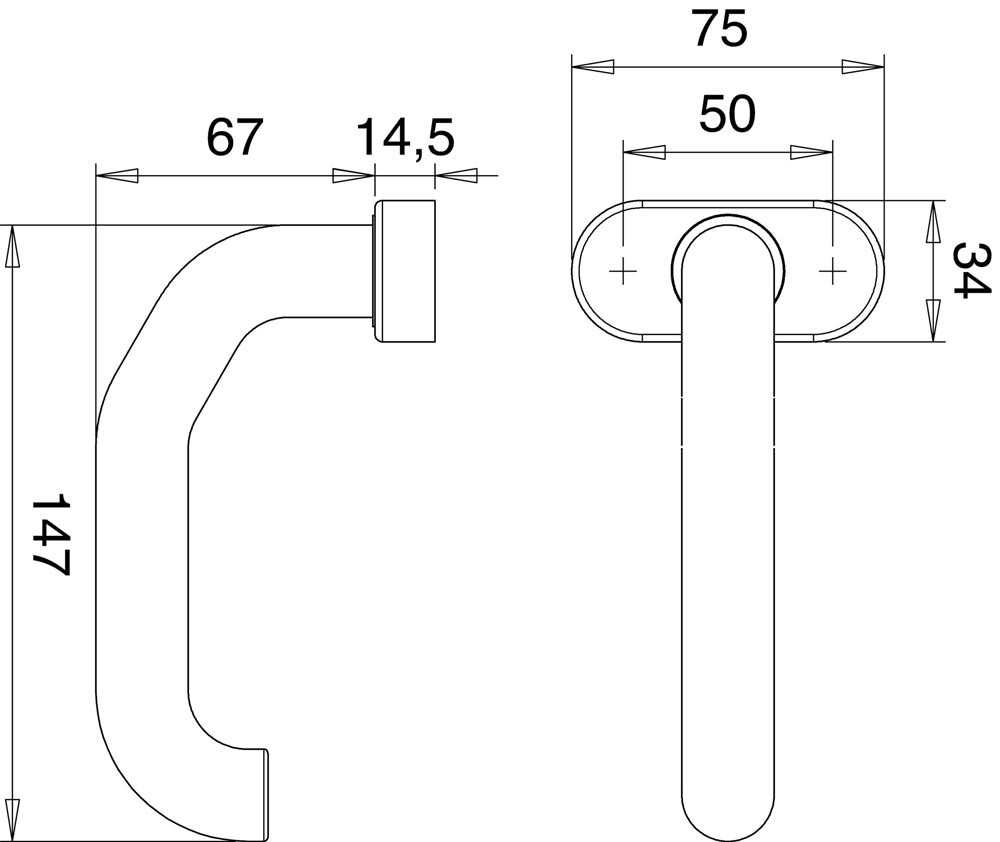 für Feuerschutzrahmentüren · gekröpft · fest-drehbar auf ovaler Rosette · mit Hochhaltefeder · Rosette Stärke 14,5 mm · verdeckte Verschraubung · Norm DIN 18273 / DIN EN 1906