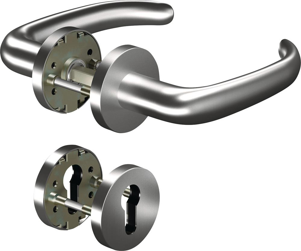 Feuerschutzgarnitur CORE+8999/6501/6612 Edelstahl ER D/D für Türstärke 38 - 63 mm PZ rund DIN links / rechts