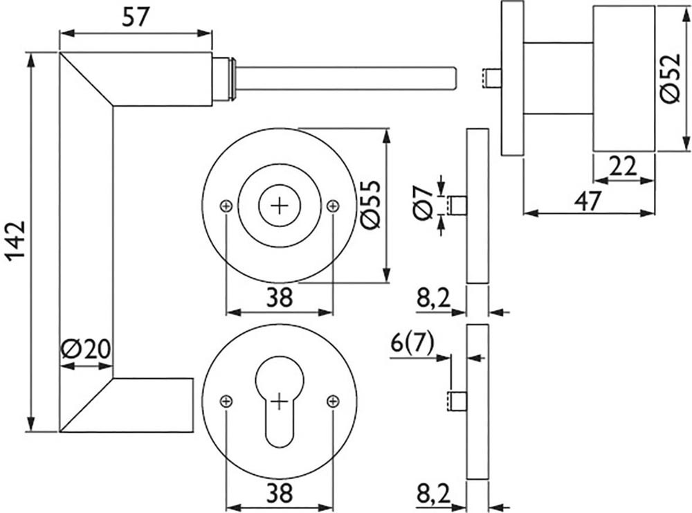 Feuerschutzgarnitur NW-443-2 Edelstahl 60 D/K für Türstärke 40-58 mm PZ rund DIN links / rechts E6499739