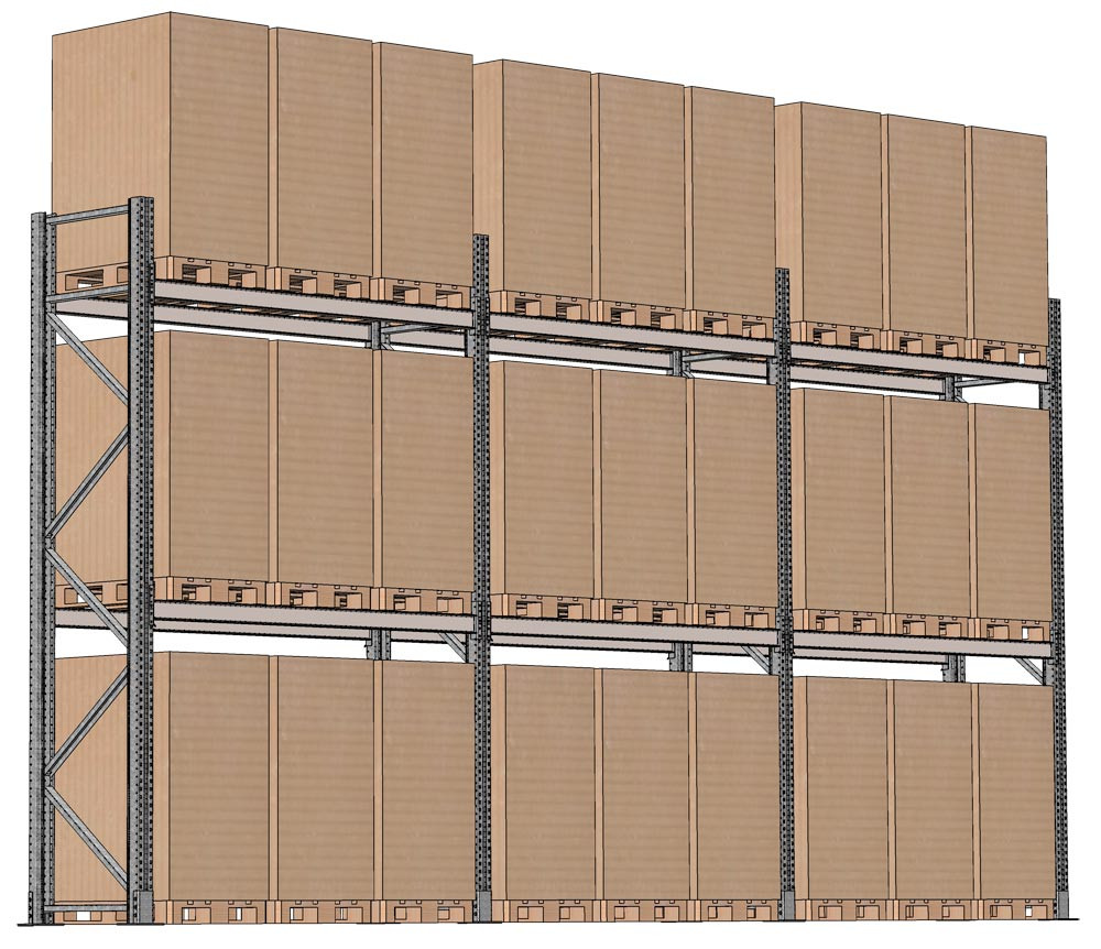∙ Feuerverzinkte Oberflächenbeschichtung ∙ Für die Lagerung von Europaletten mit einer Palettenhöhe von max. 2530 mm ∙ Palettengewicht bis 1000 kg ∙ Warmgewalzte IPE-Holme mit 5 Agaffenhaken ∙ Schraubenanker inkl. Folienpatrone ∙ Mindestanforderung: 3 Felder mit mindestens je 2 Holmebenen