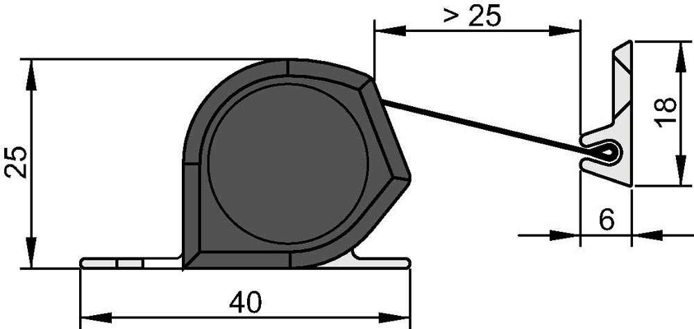 selbsttätig auf konstante Spannung ziehendes Schutzrollo · Bandgegenseite · Profil: Aluminium · Abdeckung: Kunstfaser · Farbe: schwarz · feuerhemmend ausgerüstet · abwaschbar · wartungsfrei