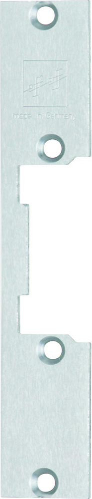 kurzes Flachschließblech, ohne Riegelausschnitt, mit Fallenausschnitt · DIN links / rechts verwendbar · mit 2 Befestigungsbohrungen · für gängige eff-eff-Standard-Türöffnermodelle außer ProFix®-Varianten
