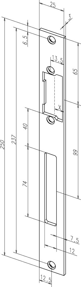 Flachschließblech 691 Edelstahl matt käntig Breite 25 x Länge 250 mm DINlinks / rechts