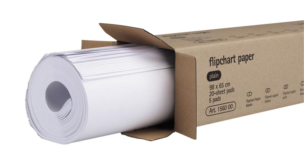 Flipchart-Papier, holzfrei weiß, chlorfrei gebleicht, Papierstärke 80 g/qm, Blattformat 650x980 mm, blanko, VE 5 Blöcke E858785