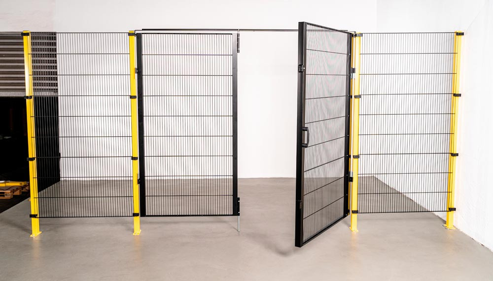 Flügeltür für Trennwandschutzgitter, BxH 1200x2000 mm, RAL 9005 Tiefschwarz