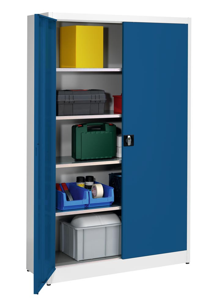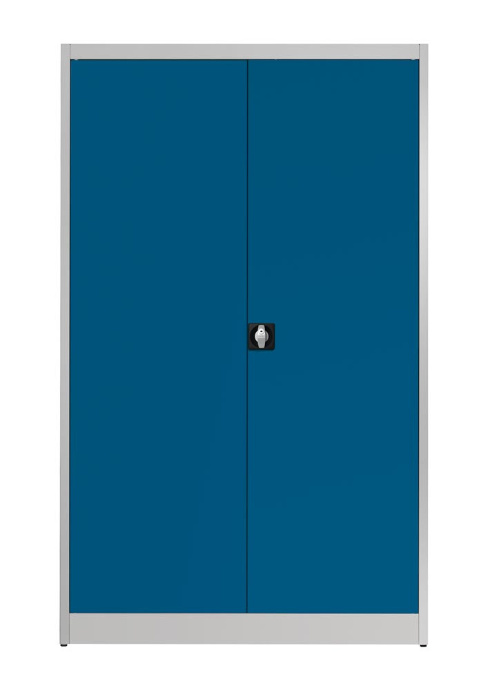 Flügeltürenschrank, 4 verz. Fachböden, BxTxH 1200x420x1965 m, RAL7035 lichtgrau/RAL5010 enzianblau