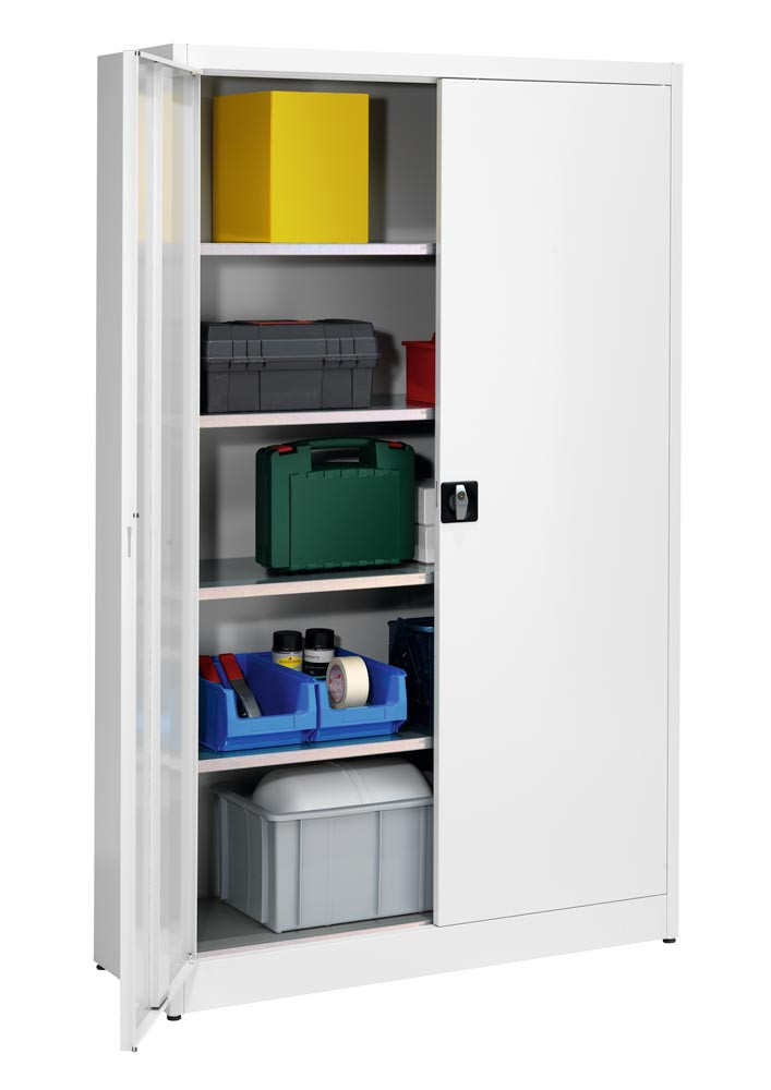 Flügeltürenschrank, 4 verz. Fachböden, BxTxH 1200x420x1965 mm, RAL7035 lichtgrau