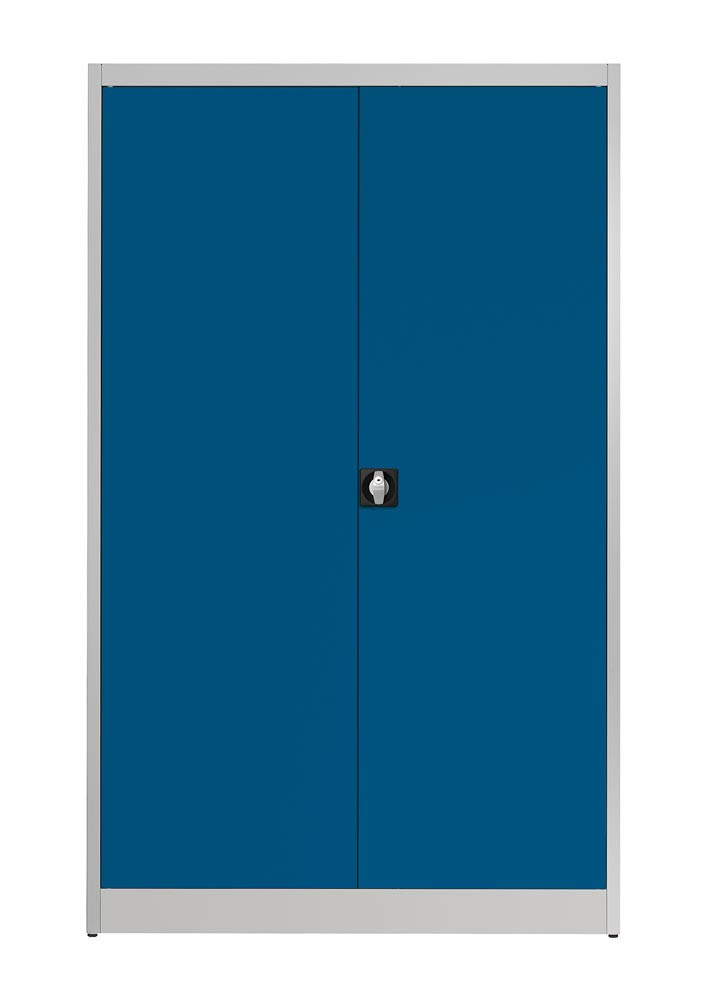Flügeltürenschrank, 4 verz. Fachböden, BxTxH 1200x600x1965 mm, RAL7035 lichtgrau/RAL5010 enzianblau