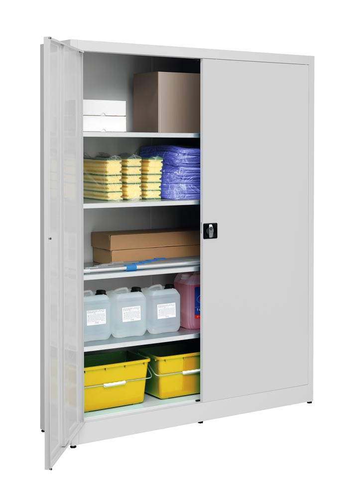 Flügeltürenschrank, 4 verz. Fachböden, BxTxH 1500x420x1965 mm, RAL7035 lichtgrau