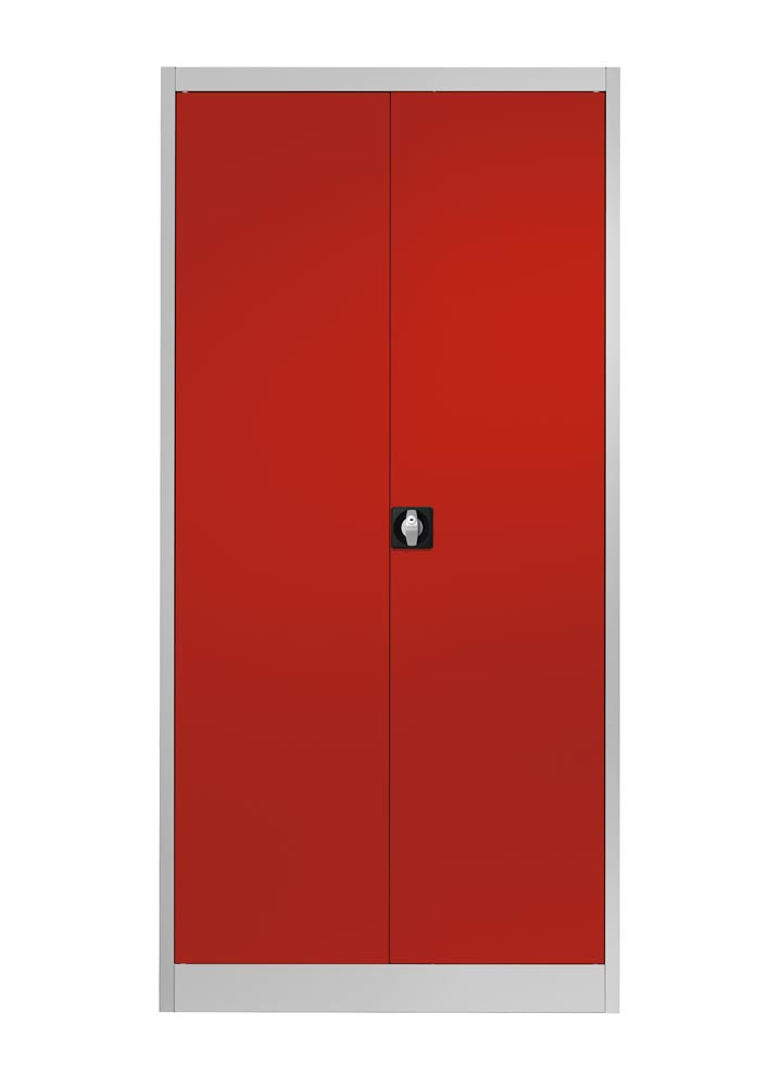 Flügeltürenschrank, 4 verz. Fachböden, BxTxH 950x420x1950 mm, RAL7035 lichtgrau/RAL3000 feuerrot