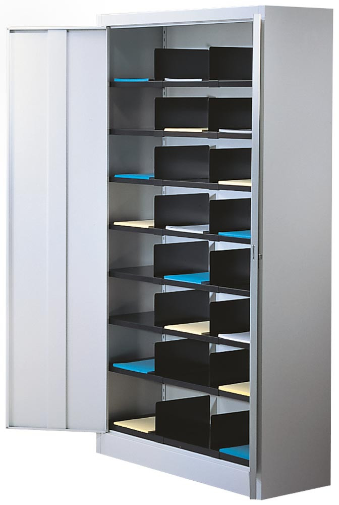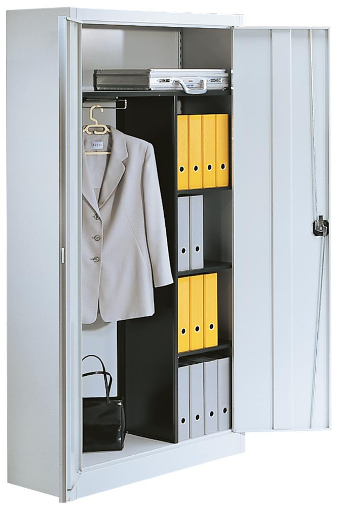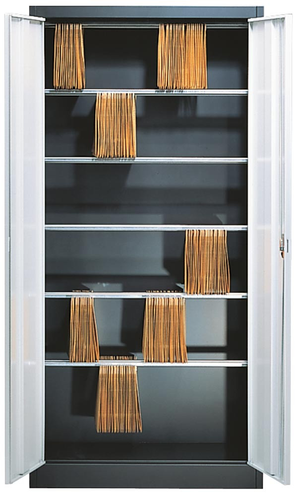 Flügeltürenschrank, BxTxH 950x420x1950 mm, 6 Pendelstangen Leitz/Elba, 42 kg Traglast/Pendelstange, RAL 7035 lichtgrau E852930