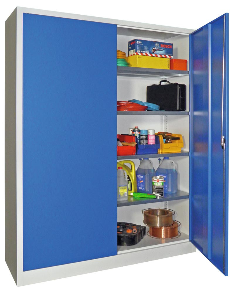 Flügeltürenschrank, Vollblechtüren, 4 verzinkte Böden, BxTxH 640x400x1950 mm, RAL 5010 E1572391