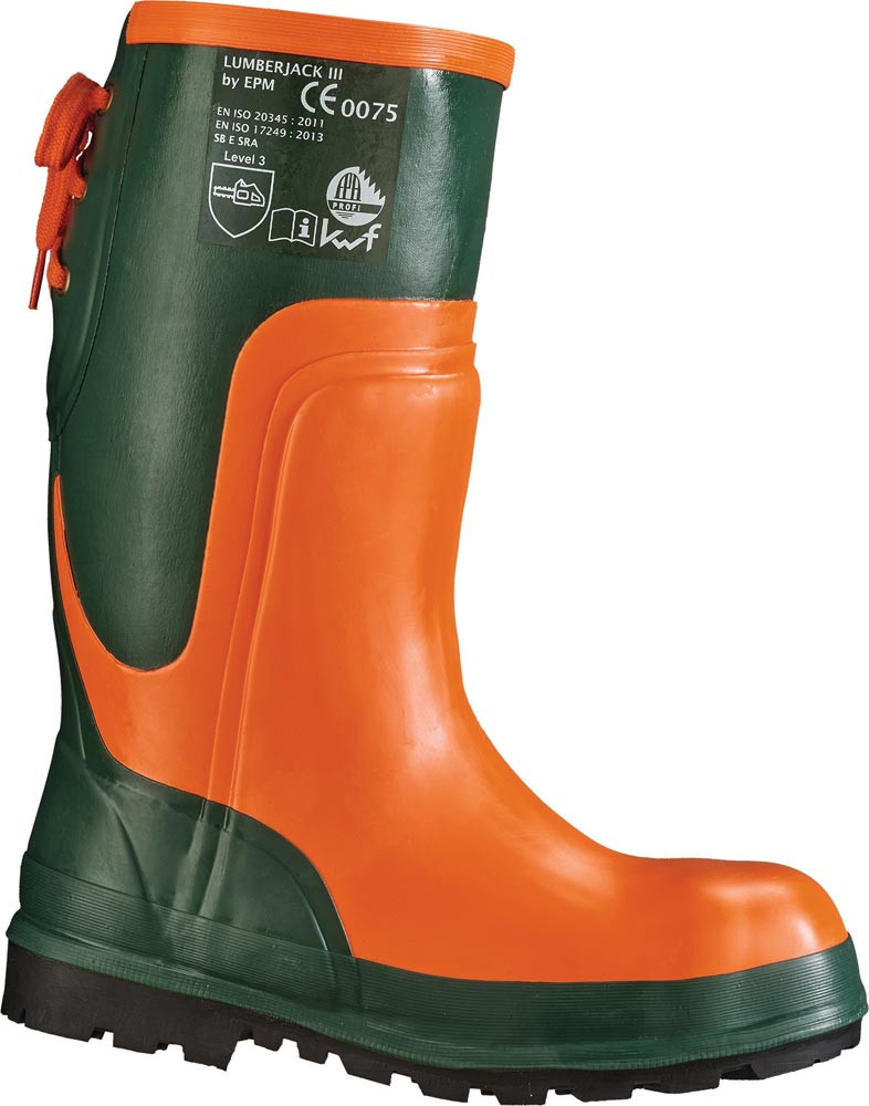 Forstsicherheitsstiefel Ulme Größe 45 W. extra breit oliv/orange Naturkautschuk SB E SRA EN ISO 20345, EN ISO 17249