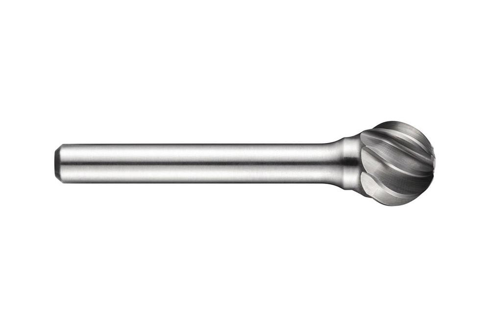 Kugel-rässtift (Form D) · Durchmesser 6mm mit 4.7mm Schnittlänge · 50mm Gesamtlänge und 6mm Schaft · Vollhartmetall mit blanker Oberfläche · AL einseitigem Schnitt mit weiter Zahnteilung für komplizierte Schlitz- · Metallgravur- und Schweißvorbereitungen in Reinaluminium · Aluminiumguss 0 und Polymere
