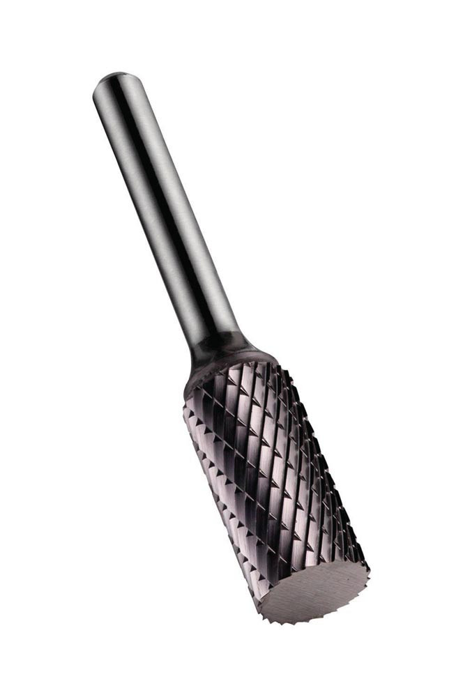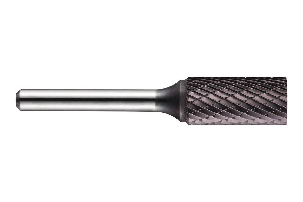 Zylindrischer Frässtift ohne Stirnverzahnung (Form A) · Durchmesser 8mm mit 19mm Schnittlänge · 64mm Gesamtlänge und 6mm Schaft · VHM mit gehärtetem Stahlschaft und TiAlN Beschichtung · DC doppelseitigem Schnitt mit enger Zahnteilung zum bearbeiten von Oberflächen in Stahl und Stahlguss · Edelstahl · Gusseisen · Kupfer oder Kupferlegierungen · Hochwarmfeste Legierungen · gehärtete Materialien