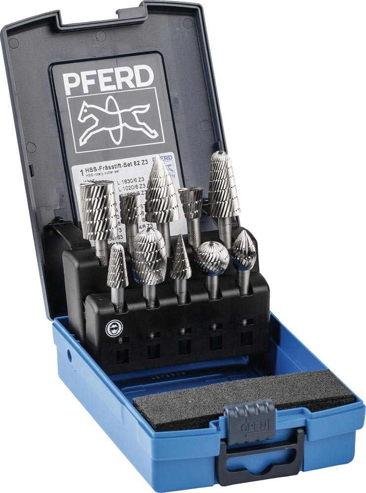 Frässtifteset 82 Schaft-Ø 6 mm 10-teilig HSS 3 bruchfeste Kunststoffbox