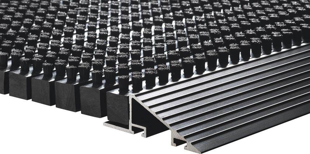 mit Aluminium-Anlaufkante in schwarz · schwarze Reinigungsbürsten aus 100 % PP · Stärke ca. 22 mm · für den Aussenbereich