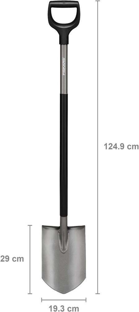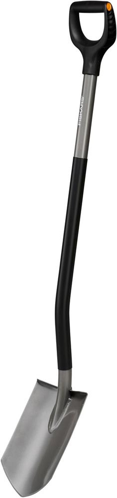 besonders geeignet zum Graben und Rasenstechen · ergonomische Form · Stiellänge 1250 mm · sehr stabil durch qualitativ hochwertigen Borstahl · geschärfte Blattkante · ergonomischer Schaftwinkel mit SoftGrip™ am Schaft · Trittfäche für leichtes Einstechen in den Boden