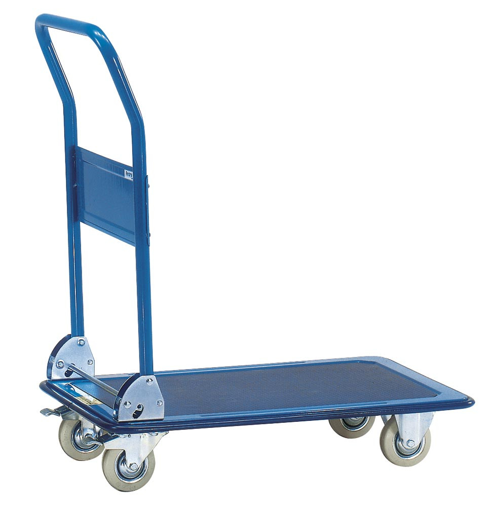Ganzstahl-Plattformwagen, Ladefläche LxB 740x480 mm, mit klappbarem Rohrschiebebügel, Traglast 150 kg E840750