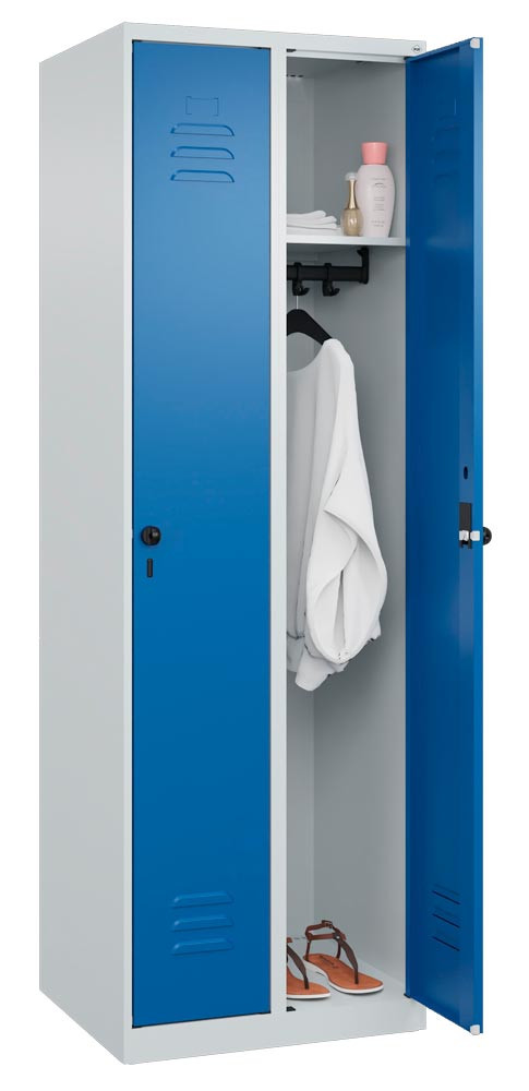 Garderobenschrank, BxTxH 400x500x1850 mm, 1 Abteil, B 400 mm, Bodenstehend, Drehriegel, RAL 7035/5010 E6471453