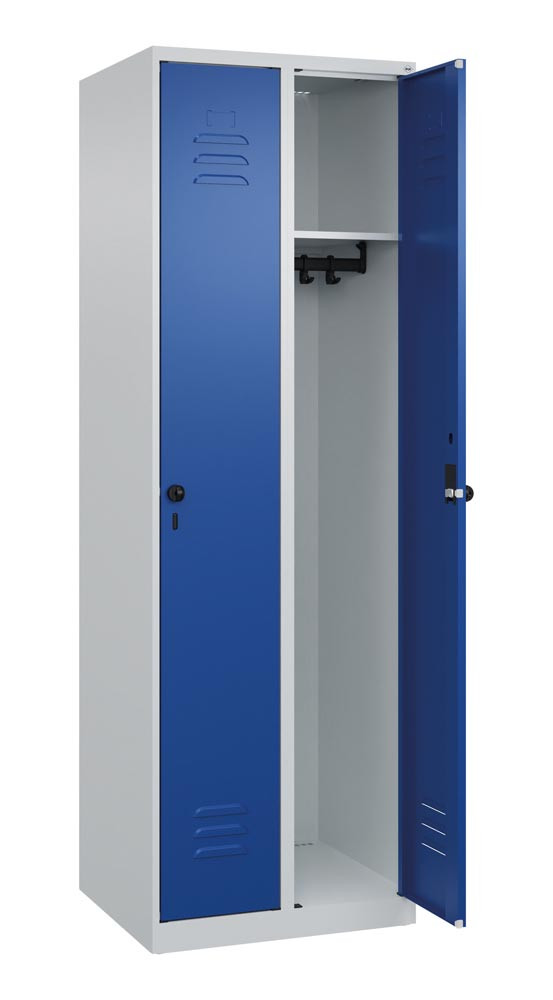Garderobenschrank, BxTxH 300x500x1850 mm, 1 Abteil, B 300 mm, Bodenstehend, Drehriegel, RAL 7035/5010 E6471444