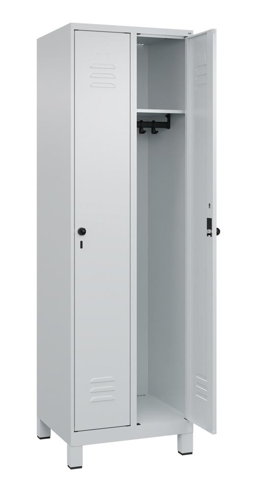 Garderobenschrank, BxTxH 600x500x1950 mm, 2 Abteile, B 300 mm, Füße, Drehriegel, RAL 7035