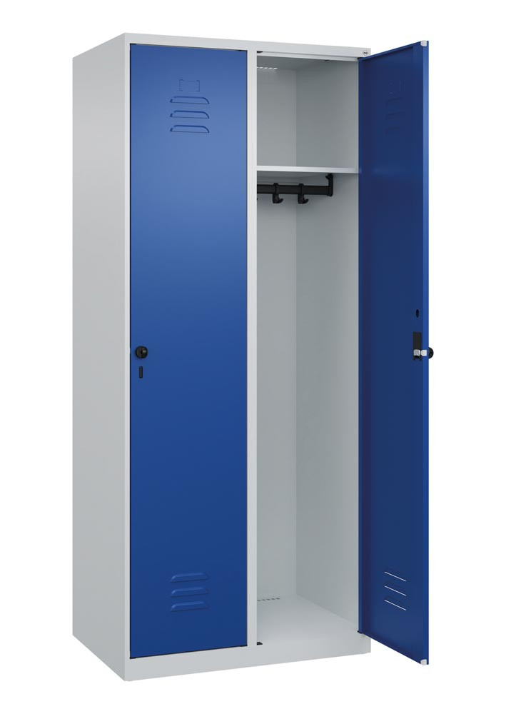 Garderobenschrank, BxTxH 400x500x1850 mm, 1 Abteil, B 400 mm, Bodenstehend, Drehriegel, RAL 7035/5010 E6471453