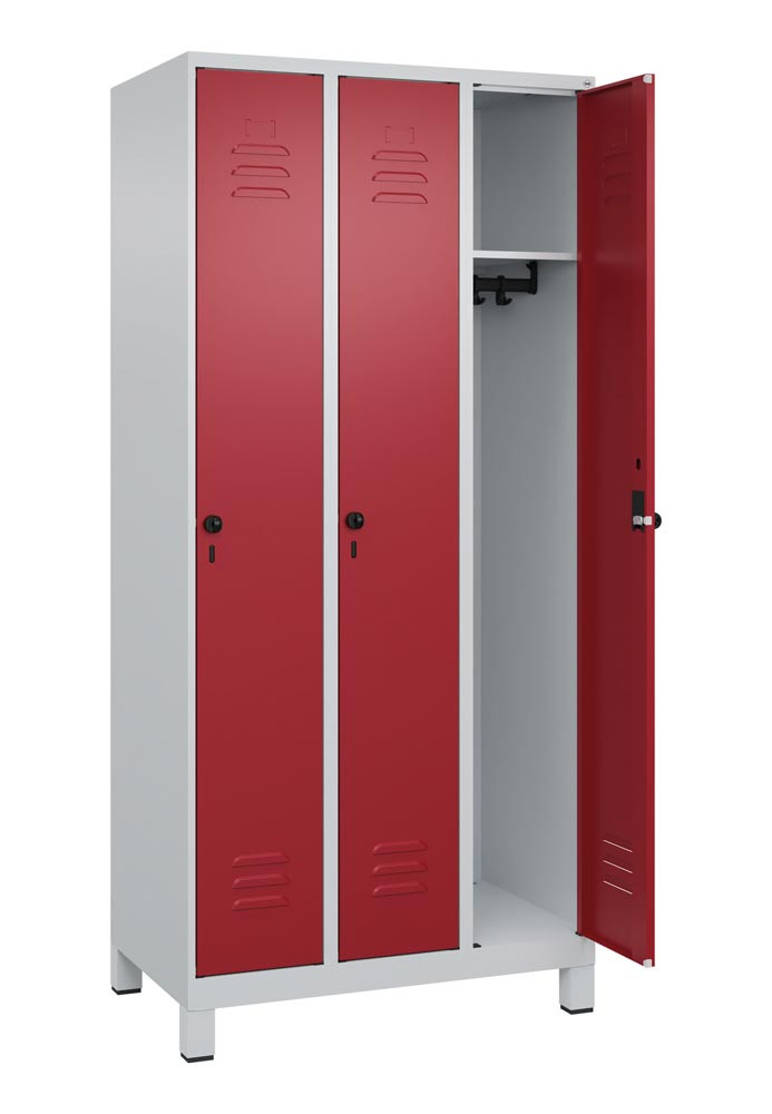 Garderobenschrank, BxTxH 900x500x1950 mm, 3 Abteile, B 300 mm, Füße, Drehriegel, Farbwahl