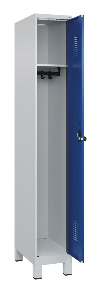 Garderobenschrank, Füße, 1 Abteil, Abt.B 300 mm, Drehriegel, BxTxH 300x500x1950 mm, RAL 7035/5010 E6476550