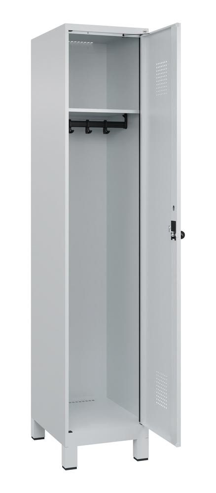Garderobenschrank, Füße, 1 Abteil, Abt.B 400 mm, Drehriegel, BxTxH 400x500x1950 mm, RAL 7035 E6476552