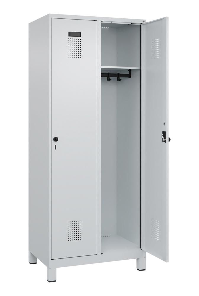 Garderobenschrank, Füße, 1 Abteil, Abt.B 300 mm, Drehriegel, BxTxH 300x500x1950 mm, RAL 7035/5010 E6476550