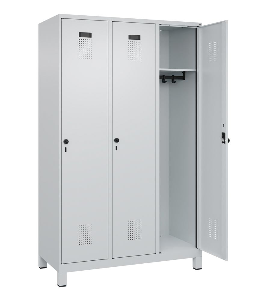 Garderobenschrank, Füße, 3 Abteile, Abt.B 400 mm, Drehriegel, BxTxH 1200x500x1950 mm, RAL 7035