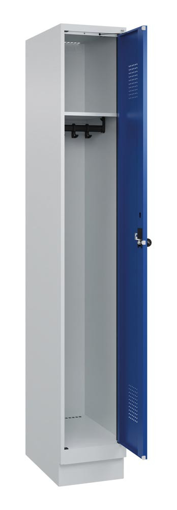Garderobenschrank, Sockel, 1 Abteil, Abt.B 400 mm, Drehriegel, BxTxH 400x500x1950 mm, RAL 7035/5010 E6476574