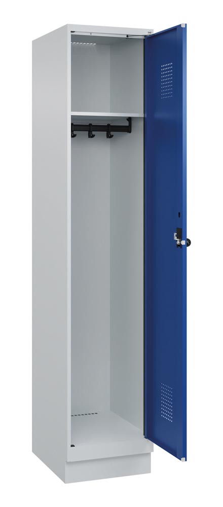 Garderobenschrank, Sockel, 1 Abteil, Abt.B 400 mm, Drehriegel, BxTxH 400x500x1950 mm, RAL 7035/5010 E6476574