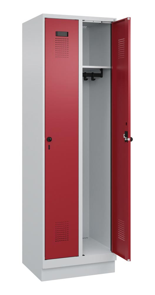 Garderobenschrank, Sockel, 2 Abteile, Abt.B 300 mm, Drehriegel, BxTxH 600x500x1950 mm, Farbwahl